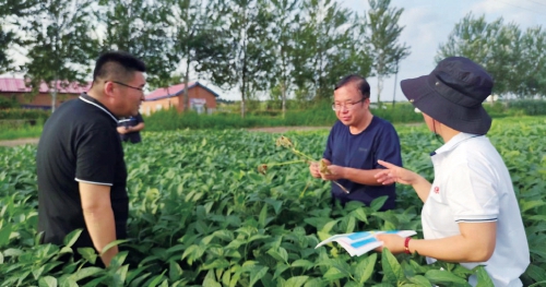 黑龙江省虎林市农技专家在开展大豆田间技术指导。